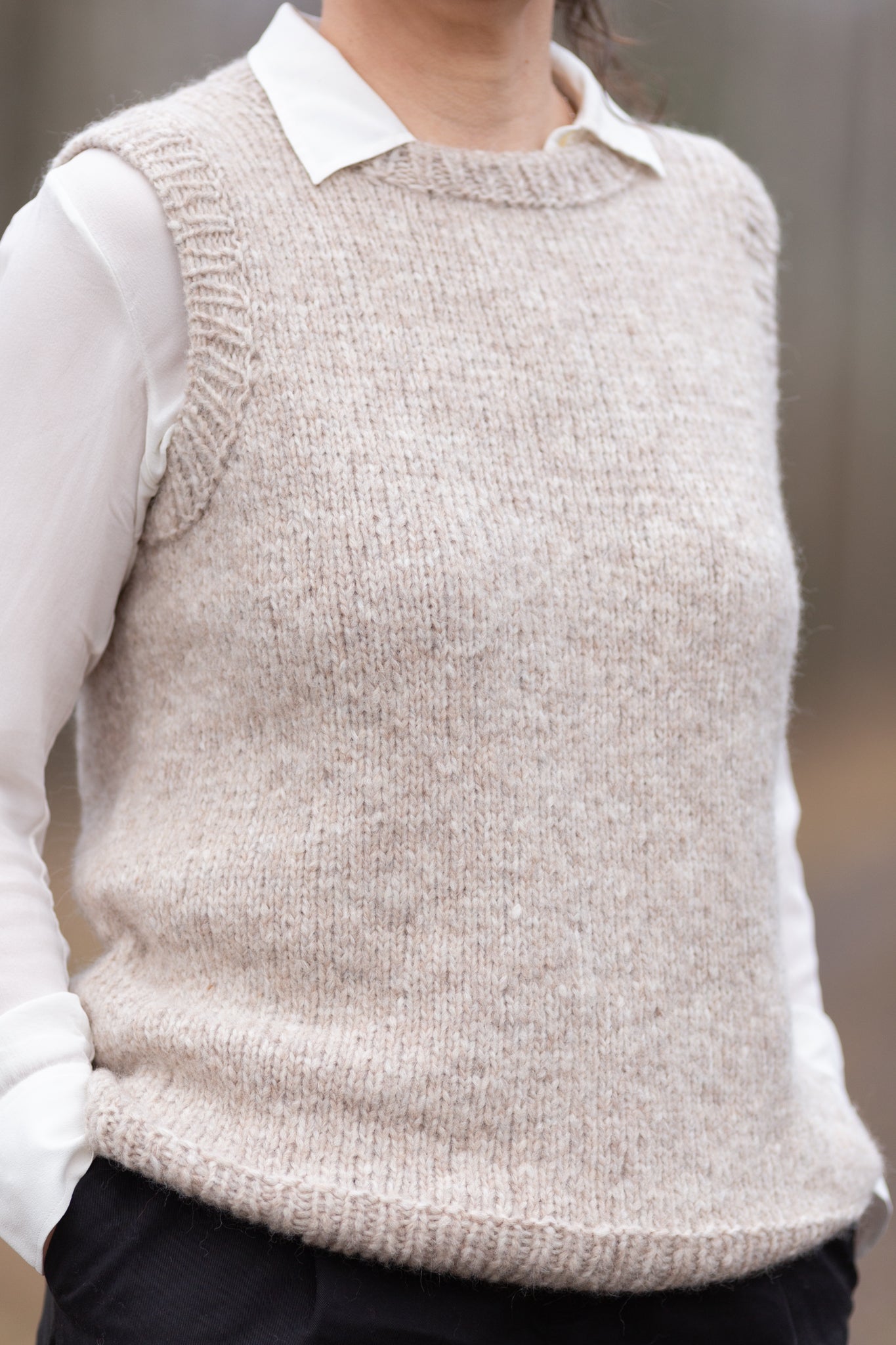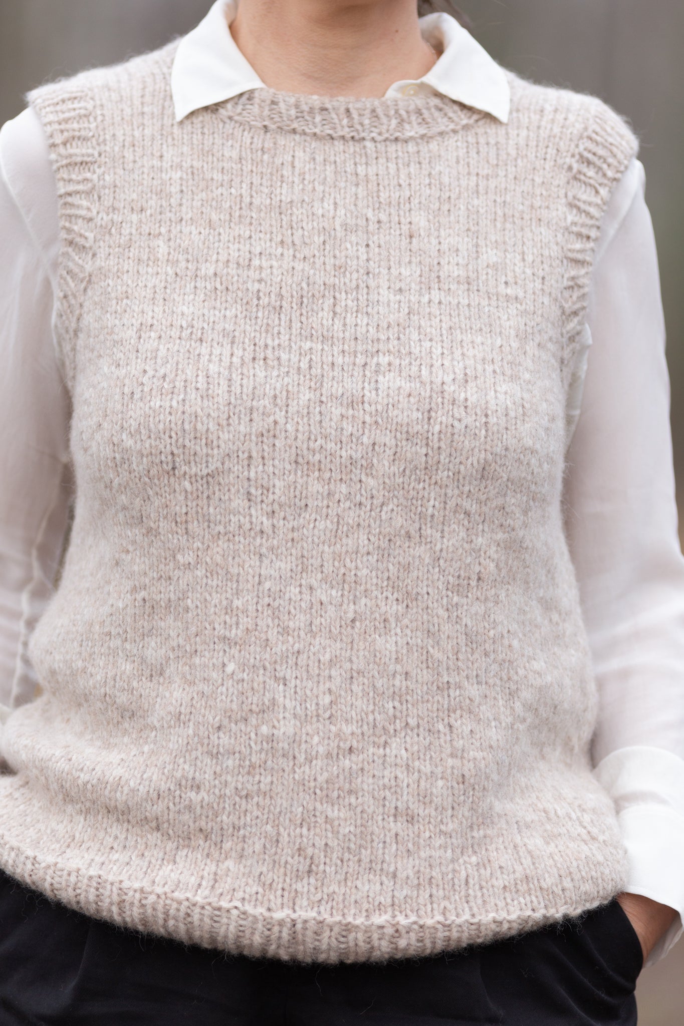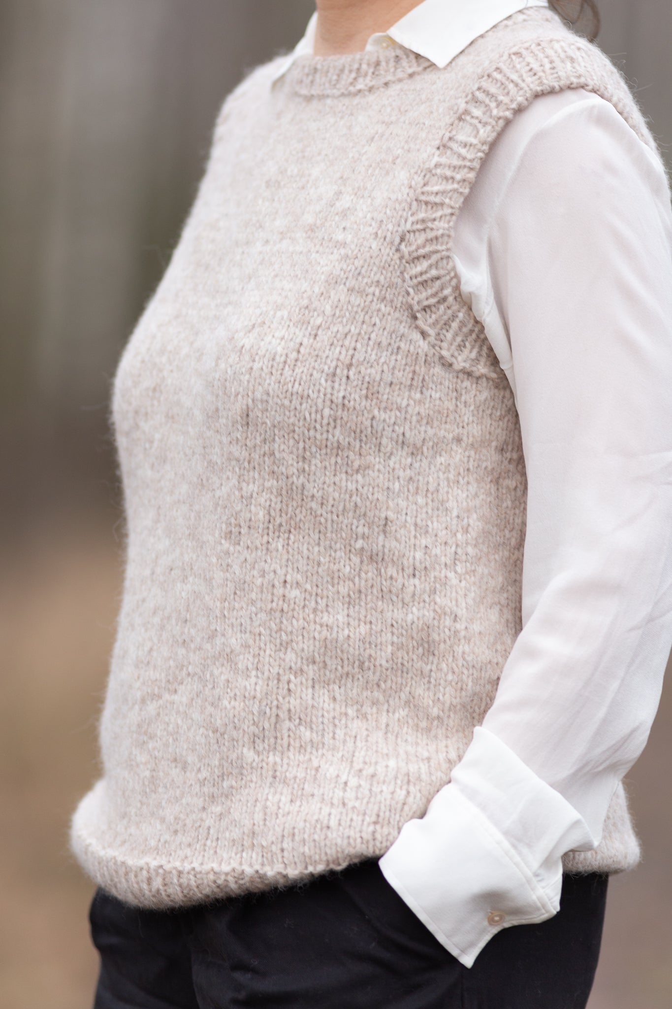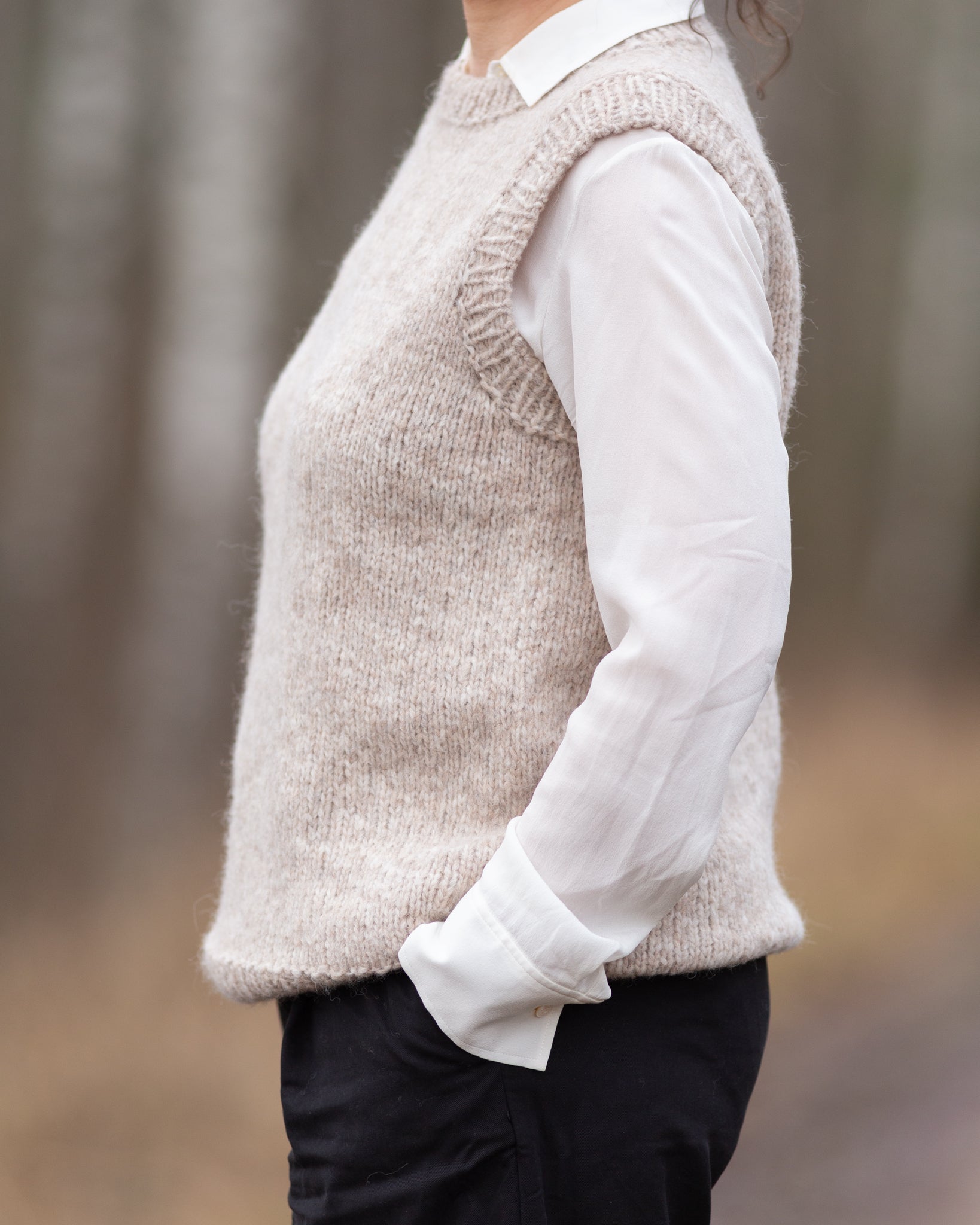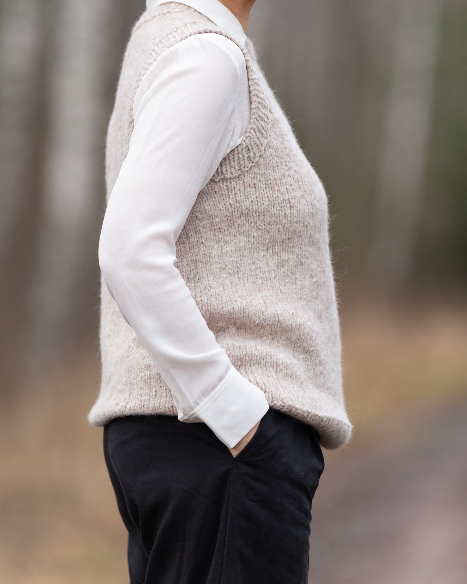 Sumu Slipover is a unisex basic slipover featuring simple Stockinette stitch. The slipover is knitted from the top-down. Sumu means “mist” in Finnish.